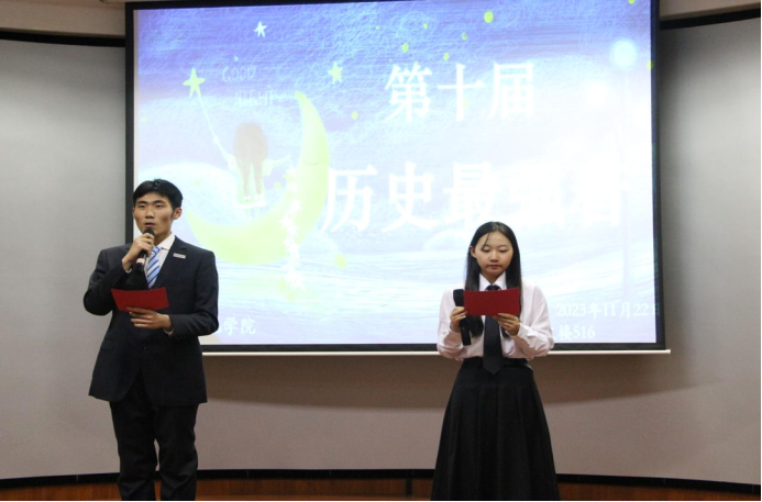 欢声笑语,追逐梦想,青春旋律在这里激情飞扬;喜悦盛开,欢聚一堂,时代风采在这里熠熠闪光。为贯彻社会主义核心价值观,丰富校园文艺活动,展现学子积极向上的健康风貌,提高学生综合素质与艺术修养,努力营造至美至善的校园文化氛围,11月22日晚16:30“第十届历史最强音”决赛,在人文楼516室正式拉开帷幕。本次大赛特邀张丹老师、隋玲楠老师、程方老师、吕英光老师以及178足球