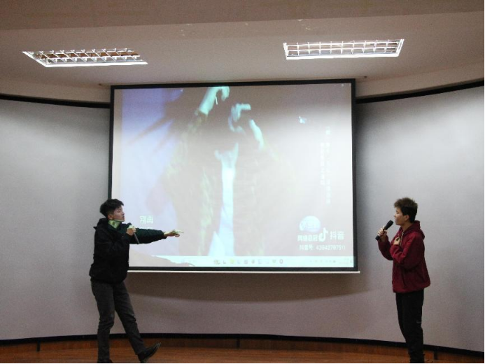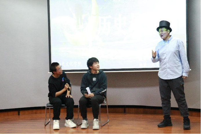 的自信与热情。粘豆包戏剧社成员王一涵、侯子涵、邱昊同学为我们带来了串场小品《大忽悠》,他们用喜剧的形式为我们展示了一部分社会的现状,引得观众的阵阵掌声。同时,也希望粘豆包喜剧社能越办越好。