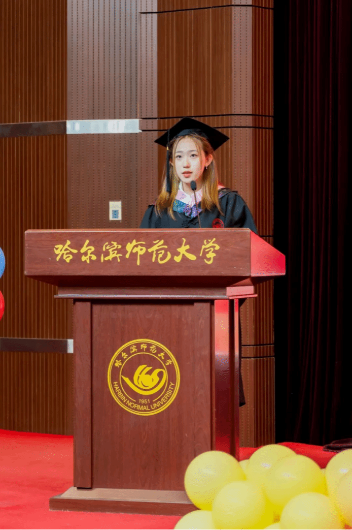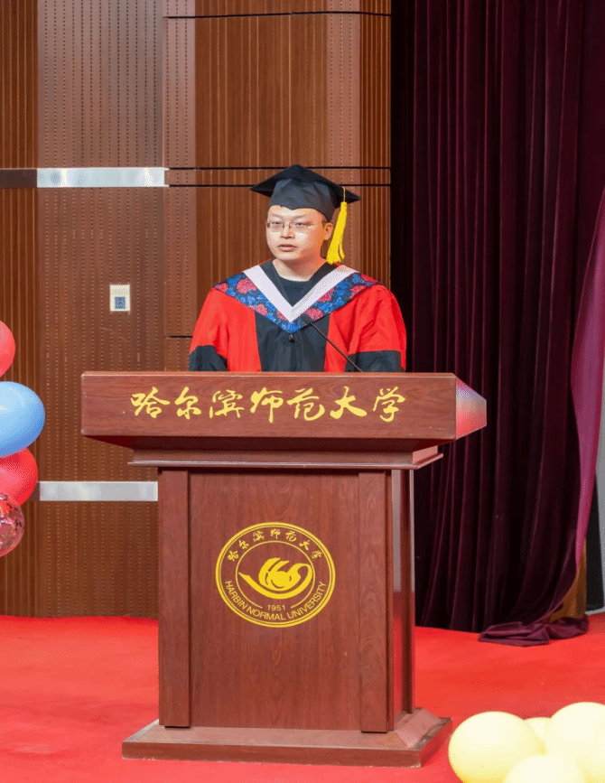 吕瑞阳同学回顾四年的学习生涯,表达了对母校的不舍之情,感恩老师的悉心教导,感谢互相陪伴的同窗情谊。今后无论身在何处,不忘自己是师大学子,牢记“敦品励学、弘毅致远”的校训与“学高为师、身正为范”的行知精神,先见自身,诉诸于己。祝愿母校繁荣昌盛,再创辉煌。