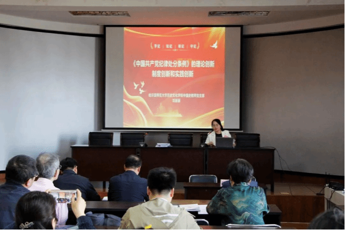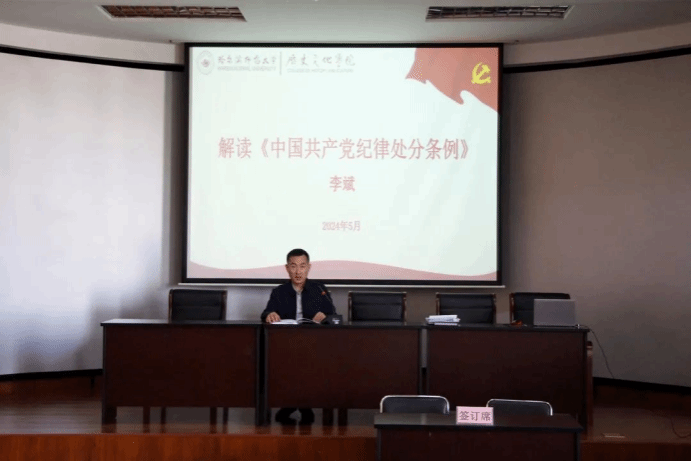 中国史教师党支部刘丽丽书记作《中国共产党纪律处分条例》的理论创新、制度创新和实践创新的专题党课等。
