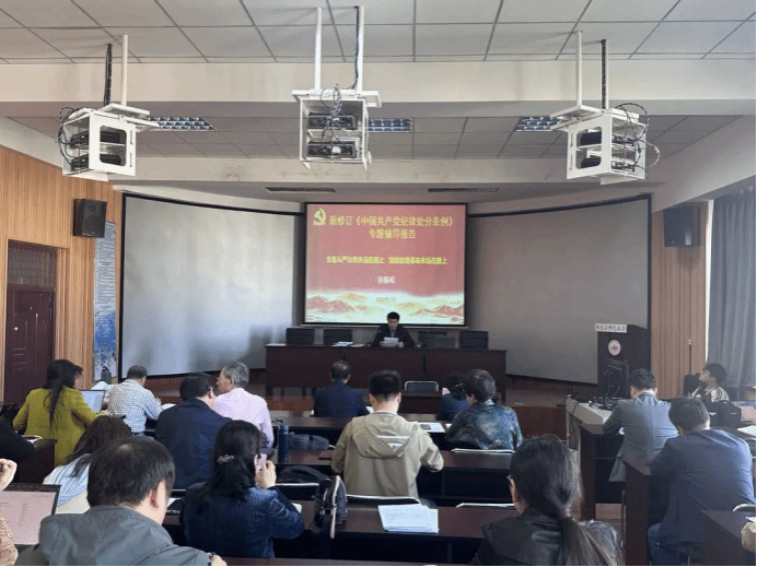 党委书记徐振岐对《中国共产党纪律处分条例》新修订部分作了专题辅导报告,对修订内容进行详细阐释。