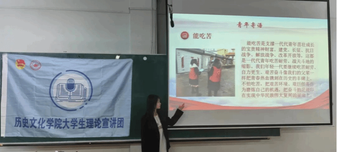 李想同学为我们讲述了党的二十大以来“能吃苦”的价值追求,她提出新时代青年学子生逢其时,沐浴在强盛祖国温暖的阳光下,更要不忘初心牢记使命,追寻先辈的步伐,吃苦耐劳勇于拼搏,将自己的一份力量贡献于祖国伟大复兴的新征程中。