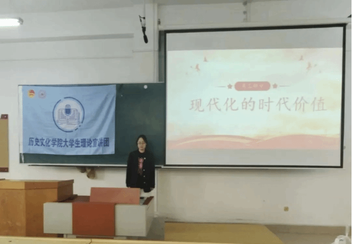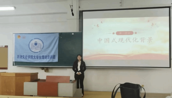 宣讲团成员芦知璇同学从不同角度讲述了中国式现代化的时代价值,中国式现代化是结合中国社会实际自主创新的成果,具有鲜明的中国特色和独特的社会价值,并具有较强的承受风险和打击的能力,当代青年要不断提升自己的综合素质,坚定中国式现代化发展道路,为中华民族的伟大复兴贡献自己的一份力量。