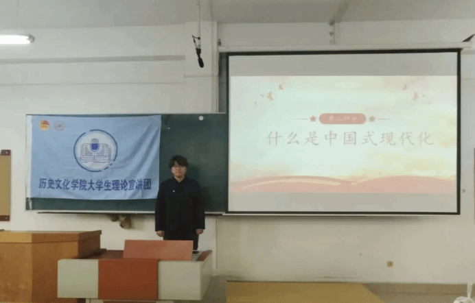 杨松直同学结合全球人口数据,各地的脱贫攻坚成果和非物质文化遗产传承向同学们介绍了中国式现代化是人口规模巨大的现代化,是全体人民共同富裕的现代化,是物质文明和精神文明的现代化。杨松直同学结合各地区优秀事例让同学们充分了解了中国式现代化在中国的大地上践行的高质量体现,促使当代青年在此基础上再接再厉,再创辉煌!