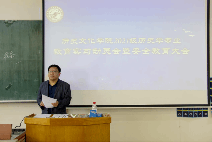 召开了 2021 级教育实习、专业实习动员暨安全教育大会。党委副书记李斌、副院长杨超、旅游管理专业实习负责人刘畅、文物保护技术专业实习负责人王冰、实习带队和指导教师,以及2021级历史学、旅游管理和文物保护技术专业全体同学参加了会议。