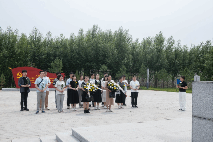 离开展厅,同学们来到敖木台战役地纪念广场,一瞬间庄严肃穆的氛围让所有人的心灵为之颤动。在刘丽丽、金丽雪老师的带领下,全体学生肃立,向英烈们献上鲜花,表达最深沉的哀思和最崇高的敬意。那一刻,空气中弥漫着对先烈的缅怀之情,每个人的心中都燃起了一团火,那是对祖国的热爱,对和平的珍惜。刘丽丽老师引领大家重温入党宣言,铿锵有力的誓言在广场上回荡,激荡着每一个人的心扉。