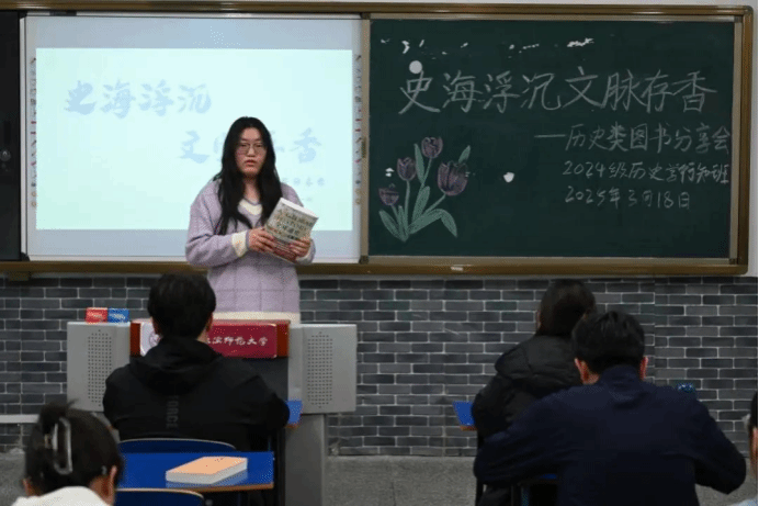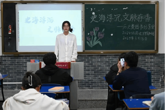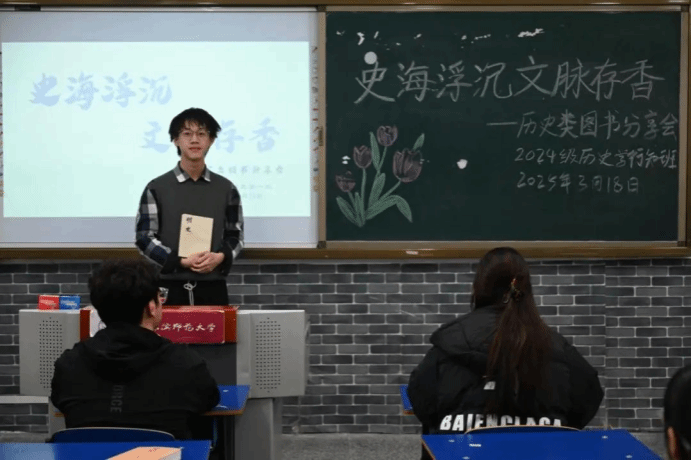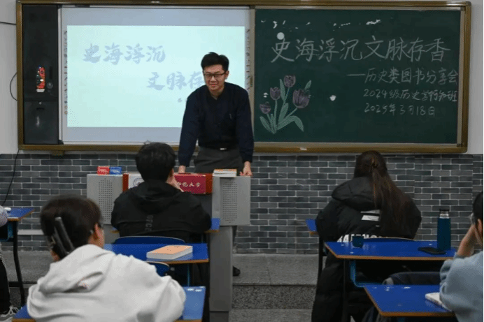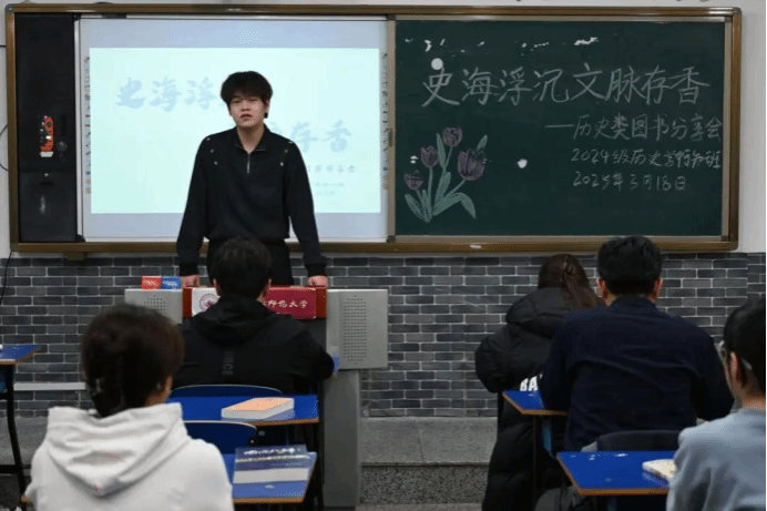 2024级历史学行知班举办了“史海浮沉,文脉存香”历史类图书分享会,班长韩昊峻同学主持本次活动,行知班全体同学参加。