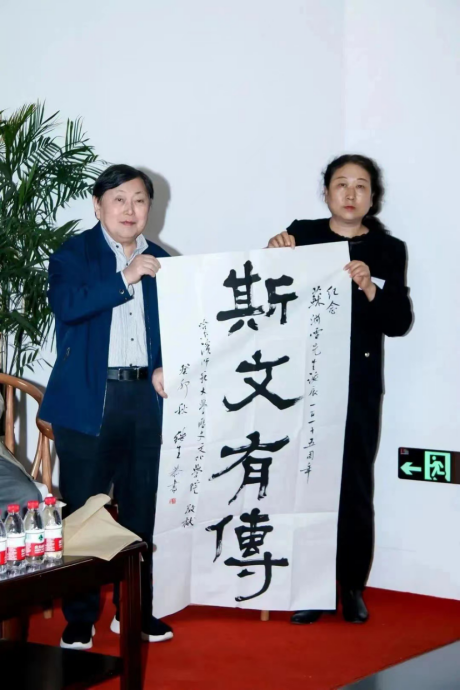 资深教授栾继生的书法作品“斯文有傳”,取义为文化有传承,学生有良师,赠送将纪念活动推向高潮。此次活动首站在华东师范大学博物馆举行,第二站将于10月23日在苏渊雷先生的家乡浙江省苍南县钱库镇苏渊雷故居举行。