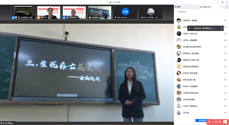 本次活动设腾讯会议室和线上直播两个会场,历史系四个年级共计500余人全员参与,178足球