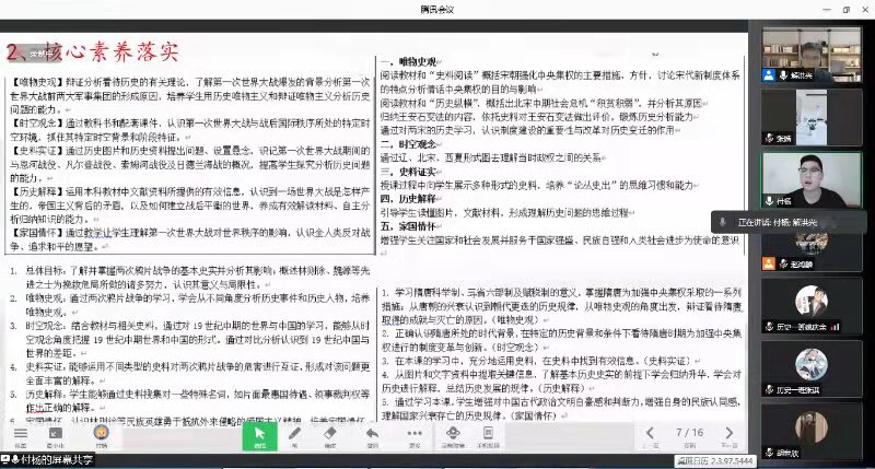 2022年1月26日19:00-20:50,历史学行知班寒假专业实践活动以腾讯会议的形式举行。为了提升全班学生说课、教案水平,班主任解洪兴老师邀请了哈尔滨市德强中学高中部教学技能突出的付杨老师做专题辅导。