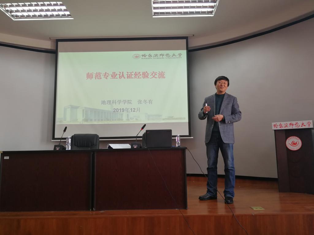 副院长张冬有教授在人文楼516会议室作“师范专业认证经验交流”讲座,讲座由178足球