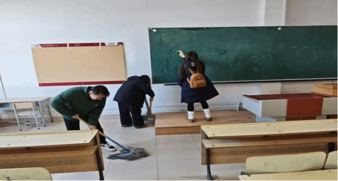 以班级为单位,对所负责教室展开了全面细致的清扫工作,包括擦拭桌椅门窗、清扫地面灰尘、整理教学用具以及消毒公共区域。学生们热情高涨,分工协作,高效完成了清扫任务,使教室面貌焕然一新。