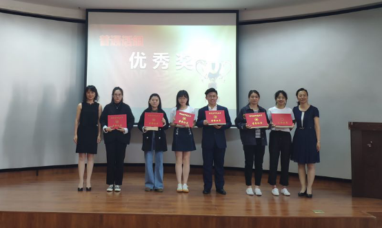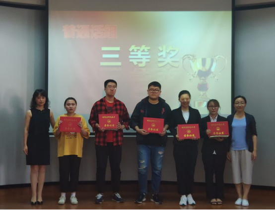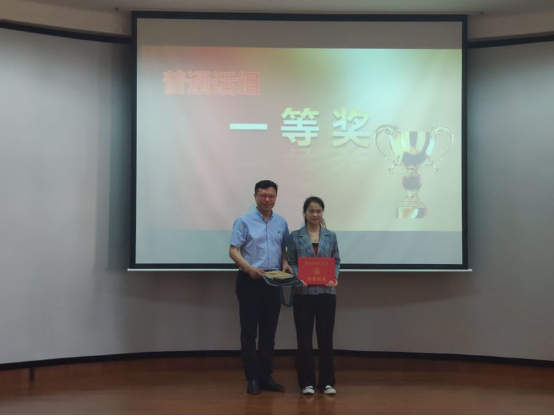 张微通过镇定自若的讲解和出色的才艺表演,获得了普通话组一等奖;张言、浦学珍和王蕴琦荣获普通话组二等奖;刘小宁、梁晨、韦露雯、李瑾和周梓航荣获普通话三等奖;高尚、胡震煜、魏楚懿、夏楠、常义筠和甘琳荣获优秀奖。由党委书记孙叔勇、张欣老师、王凤英老师、吴玲老师、刘畅老师为他们颁奖。