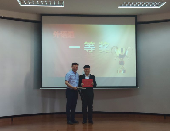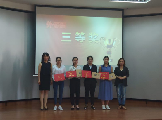 党委书记孙树勇为其颁奖。荣获外语组二等奖的是韦晓宁和梁旷映雪,荣获外语组三等奖的是陆丽羽、刘倩茹、张梦琪和王兰。