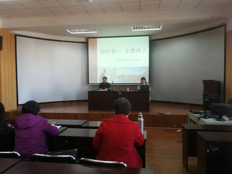 副院长胡菊华教授做了“知行合一,立德树人”专题报告。胡菊华从大学之大在于大师入手,深入阐释了师德建设对于大学发展的重要意义,详细解读了《高等学校教师职业道德规范》、《高等学校在职教师从业行为“十禁止”》等文件内涵,并就如何提升师德修养提出了宝贵的建议。讲座深入浅出,引人入胜,全体参会干部教师均感受益良多。
