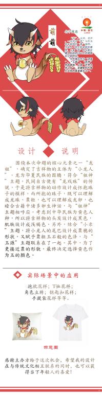 实际上在此前,历史文创师生刚刚经历了一场级别更高也更为严峻的赛事洗礼,那就是闻名海内外的上海国际大学生广告节。上海国际大学生广告节由上海大学、上海市广告协会主办,上海市教委、上海市工商行政管理局、上海市对外文化交流协会指导,是海内外几百所著名高校共同参与的创意平台,完全采用国际化的赛制和规则,近些年在创新创业赛界声名雀起,2017年是它光彩耀目的第十六届赛事。解洪兴老师指导的文创团队为世界旱地农业主题公园设计了一款名为“萌萌”的吉祥物,尽管师生均非广告业出身,但作品怀抱龙珠、尾作谷穗、黑发褐肤的小龙人造型设计还是打动了各位评委,在数以千计的作品中入围,最终获得优胜奖。
