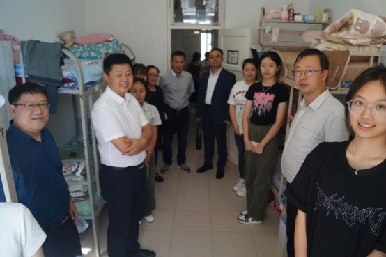 党委书记徐振岐、党委副书记李斌、副院长杨超、副院长孙瑜、2023级新生辅导员张丹、吕英光到公寓走访慰问2023级新同学,与同学们进行了面对面的交流。