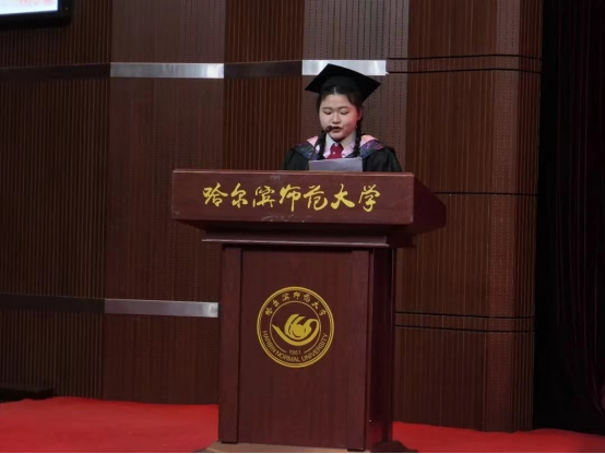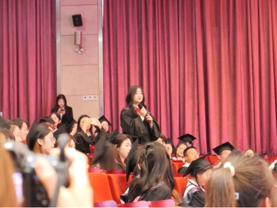 毕业生本科生代表范益洋、毕业生研究生代表张钰钒,深情回顾了在178足球直播网官网 度过的美好时光,并代表全体毕业生向母校、恩师和同窗表达了由衷感谢和诚挚祝福。聚是一团火,散是满天星,大家定会牢记“敦品励学 弘毅致远”的校训,在自己的岗位上作出一番成绩,展现现代学子的独有风采!