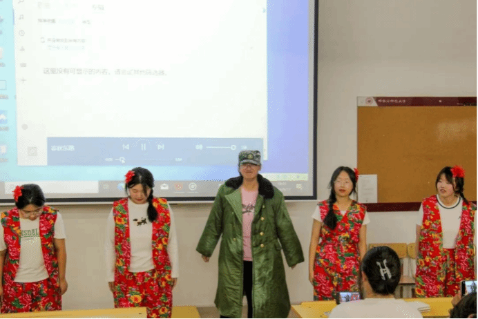 刘洋、李鑫、崔宁芮、牟晋元、魏齐桐、王睿泽六位同学为大家带来了一段充满特色与创意的舞蹈《红高粱模特队》,让大家感受到了多彩独特、勤劳乐观的东北地域文化。