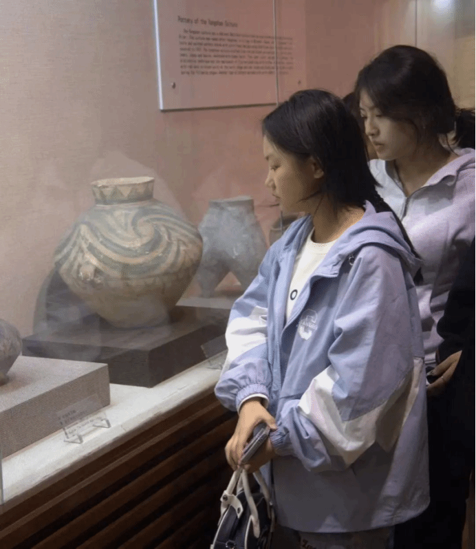 跟随着讲解员的脚步,同学们来到文博馆。馆内藏品2000多件,产生年代几乎覆盖了中国古代各个历史阶段。从原始社会时期到秦汉,从唐宋到明清,其中不乏存世孤品和国内罕见文物,如:青龙盘、齐白石真迹等。展览柜里琳琅满目的展品见证了历史的变迁。书画展区内苍劲有力的笔锋,栩栩如生的画作展现了中华文化的魅力。文博馆犹如一扇时光之门,带领同学们穿越历史的长河,感受中华文明的光辉印记。