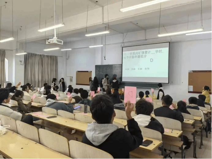 竞赛组委会准备了《学生手册》相关知识竞答题,试题主要包括学校概况、学生管理规定、教学管理规定、校园生活指南、评奖评优政策等内容。同学们积极竞答,气氛热烈。