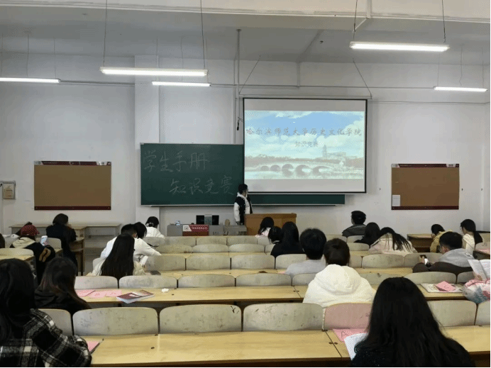 (潘禹洋/文)为提升178足球直播网官网 学生学习《学生手册》的积极性,促使学生以该手册内容规范行为,178足球 于2024年10月23日在人文楼608教室举办《学生手册》知识竞赛,2024级学生参加活动。