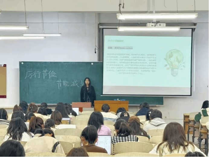 潘禹洋同学对大学生如何做到节能减排进行了讲解,从衣食住行入手,为同学们解答了如何更好地践行低碳生活理念。