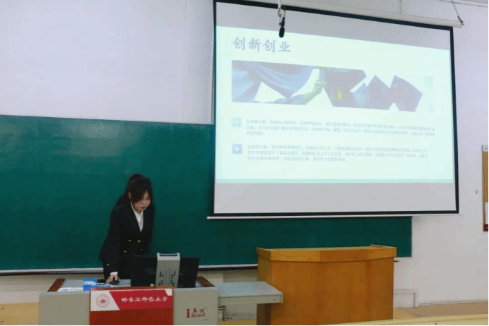 活动伊始,刘语熙同学详细介绍了“中国国际大学生创新创业大赛”“建行杯”“挑战杯”等多项重要的创新创业比赛。她特别提到了龙江高校在相关赛事中的卓越表现,如在中国国际大学生创新大赛(2023)总决赛及第十六届全国大学生创新年会上,龙江高校斩获了众多奖项,金奖总数大幅增长,在全国名列前茅。这些成绩不仅彰显了龙江高校学子的创新实力,也激励着在场同学积极投身于创新创业大赛,勇于展现自我风采。