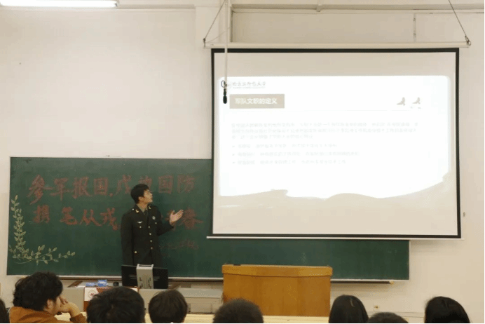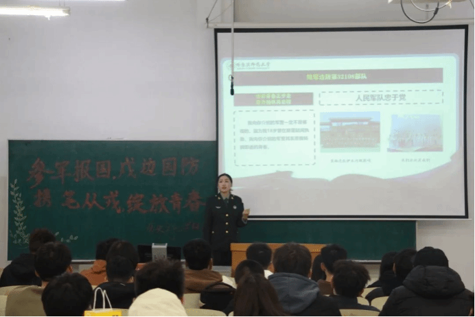 (潘禹洋/文)为了让学生充分了解征兵政策,激发参军热情,哈尔滨师范大学武装部征兵宣讲团于2024年11月26日在人文楼613教室举办征兵政策宣讲活动。