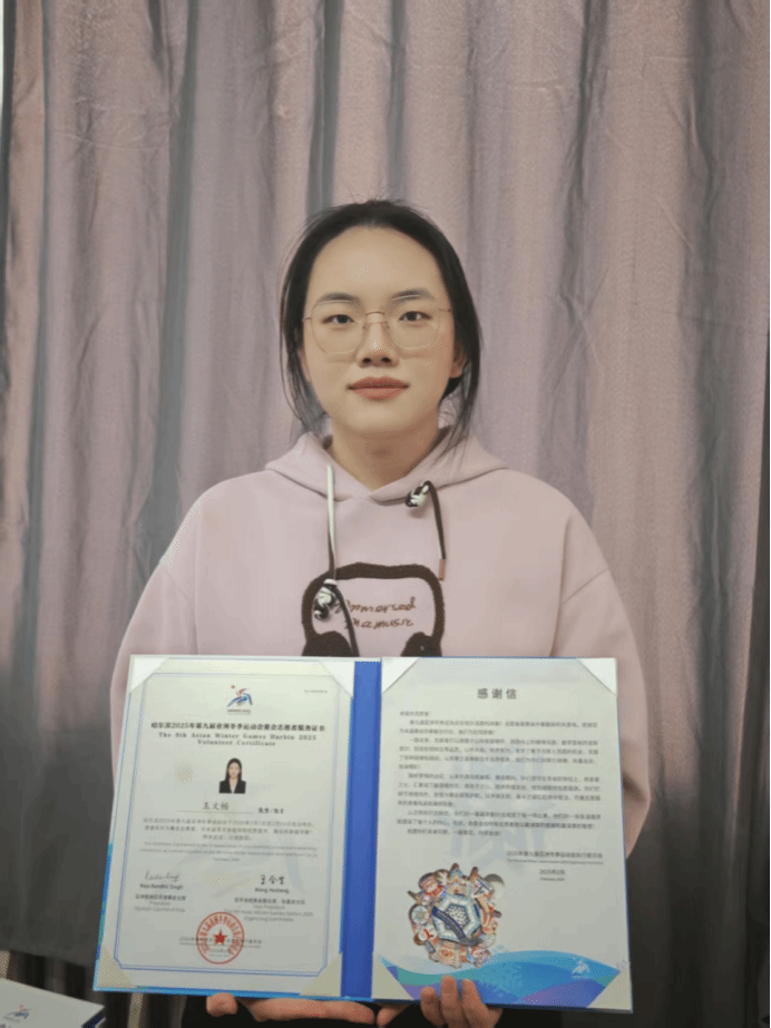 这次志愿服务经历让我明白:志愿者的价值不在做了多少事,而在于传递了多少温度。当脱下志愿者服装时,胸前的雪花徽章依然滚烫。这片黑土地赋予我们冰的坚毅、雪的纯粹,而我们正用青春的热度,让世界看见北国冰雪下跳动的心脏。