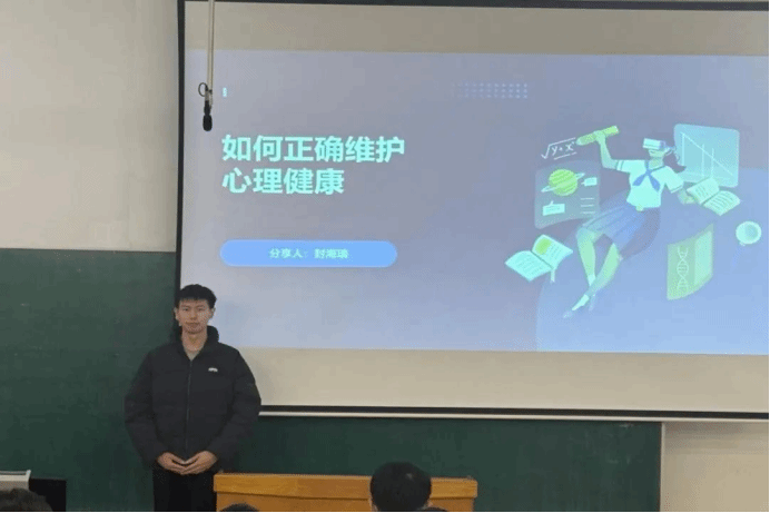 心理委员封海瑞聚焦于心理健康维护。他指出:在学习生活中大家难免会存在压力,同学们需学会识别、表达与调节,这样不仅能帮助大家更好地应对学习压力,还能提升学习效率,促进学习进步。