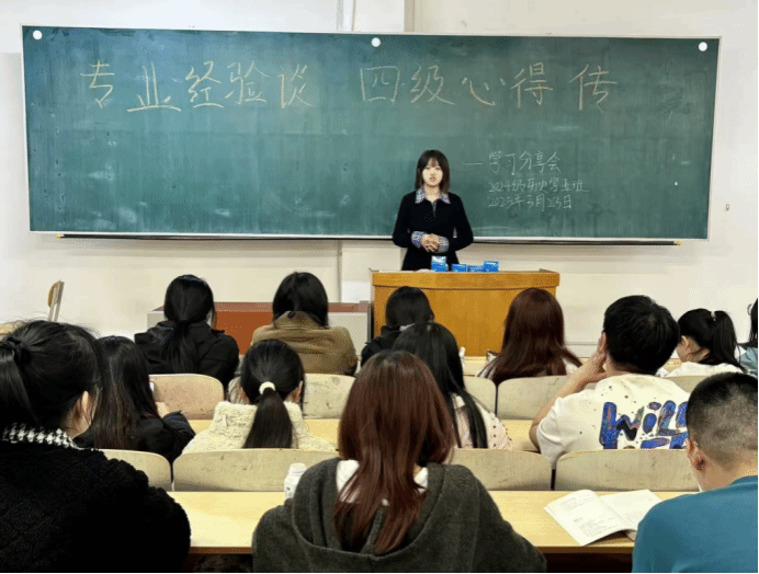 为进一步加强178足球 学风建设,提升同学们的专业课学习效率和英语四级备考能力。2025年3月23日,178足球 2024级历史学五班举办了“谈学习经验,传四级心得”学习分享会,班长吴泓樾主持本次活动。