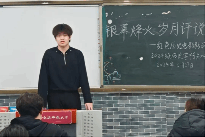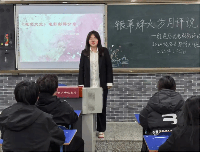 2024级历史学行知班举办了“银幕烽火,岁月评说”红色历史电影影评分享活动,班长韩昊峻同学主持本次活动,行知班全体同学参加。