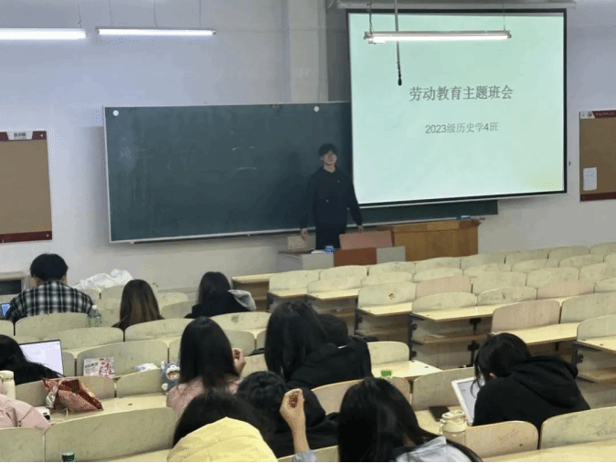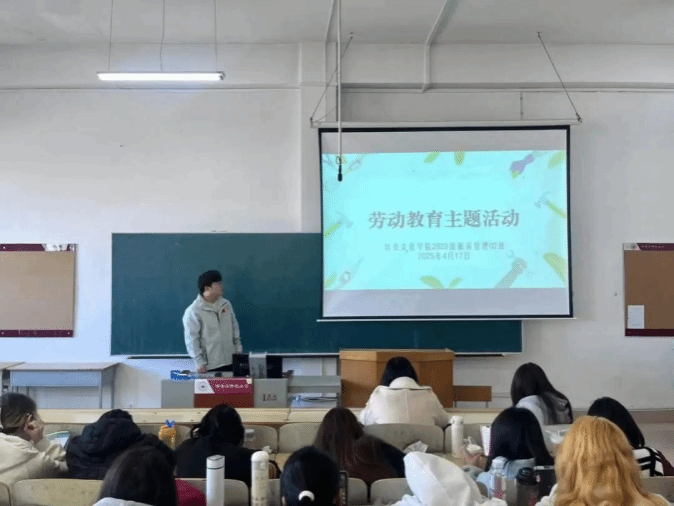 活动期间,各班负责人以时间为轴,从历史上的劳动楷模讲起,将劳模精神的传承与学生自身发展紧密相连。通过播放弘扬劳动精神的纪录片,展示了不同时期劳动模范在各自岗位上的坚守。在“讲好劳模故事”环节,同学们踊跃分享身边的劳模事迹。在热烈的讨论中,大家深刻认识到,劳模精神不仅是一种精神符号,更是激励青年学子立足专业、刻苦钻研、服务社会的行动指南。