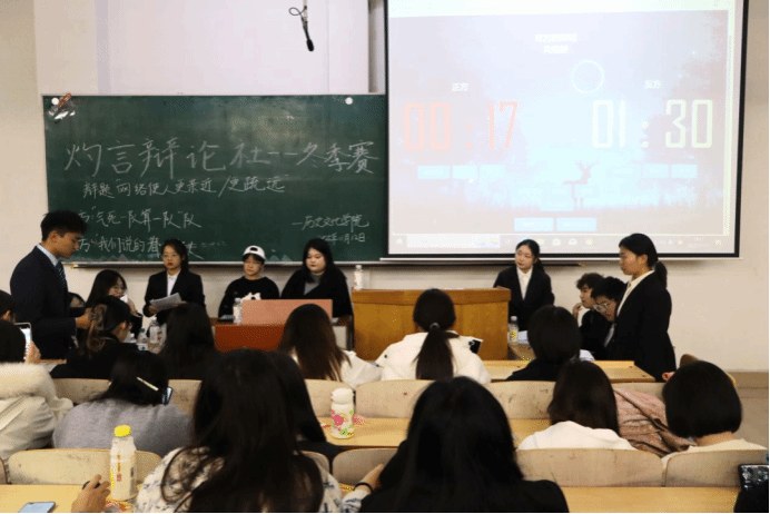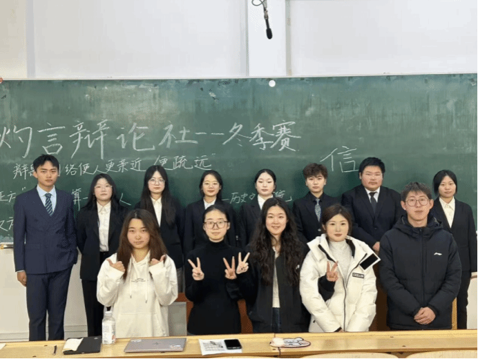 灼言辩论社在人文楼112室举办“言绽青春华章,思耀历史荣光”主题辩论赛。