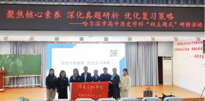 活动中,双方党员全程观摩了以“聚焦核心素养 深化真题研析 优化复习策略”为主题的哈尔滨市高中历史学科“双主题式”研修活动。此次活动聚焦学科育人,引入AI智慧课堂等现代教育技术手段,探索历史教学的新路径与新方法。中国史教师党支部王耘老师对研修内容进行了现场指导,从教学理念、课程设计和复习策略等方面提出了专业建议,展现了高校教师在基础教育改革中的引领作用。