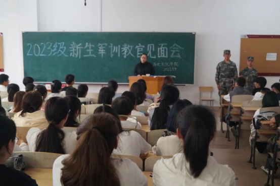于2023年9月4日上午9时在人文楼516、613教室举行2023级军训动员大会,承训教官和2023级所有参训学生参加大会。大会由院学生工作办公室主任、2023级辅导员张丹主持。