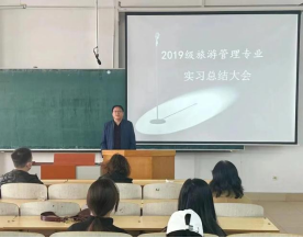 副院长杨超、旅游管理系副主任张欣、教研室主任王闯、教师王凤英等出席了总结大会。旅游管理系2019级实习生参加了大会。
