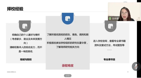 田玮馨分享了自己在考研过程中的心得体会,从择校选择、学校录取难度、专业书目推荐等方面多维度考量,以积极良好的心态去面对考研,并及时做好考研信息的收集工作,做到早谋划、早打算、早准备。避免自我情绪内耗,合理安排学习计划才能实现最终的成功。