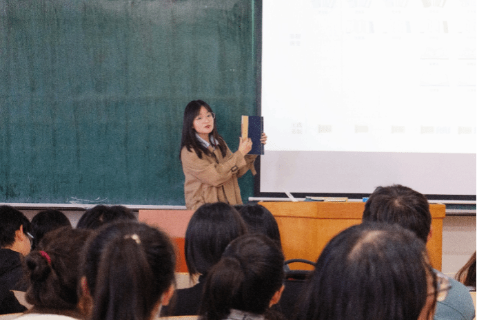 赵慧敏老师主要介绍了专业实践课程的内容,并且展示了古籍装帧样书,还从实践方面提出要求,希望同学们能细心、耐心对待每一件文物,做文化的传承人。