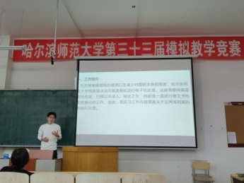 代良明同学代表学校档案馆集中实习队进行实习总结。他讲述了实习期间从事的图纸档案的修复扫描,以及在档案馆的一些修复工作。通过对基建图纸修复、扫描、录入、使用及对图纸进行电子化处理等一系列操作的学习,使在校档案馆实习的六位同学收获颇丰,深刻体验到了文物实践工作的重要意义。