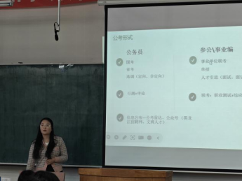2017级毕业生陆佳丽主要分享了自己考研以及考公的相关经验。向同学们介绍了公务员、事业编的考试形式以及注意事项等。并且分享了在博物馆工作的感悟与体会,鼓励学弟学妹们学有所成,。
