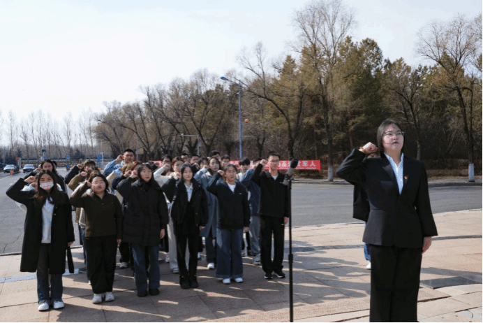在张益铭同学的领誓下,全体学生代表庄严宣誓:“敦品励学,弘毅致远。学高为师,身正为范……”誓言铿锵有力、掷地有声,充分昭示着新时代青年对先贤的敬仰之情和传承行知精神的坚定决心。