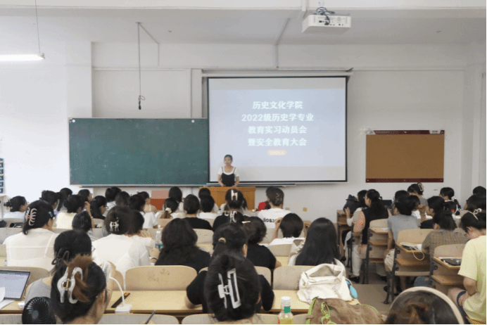 (韩宇彤/文)为扎实推进教育实习工作,强化学生安全意识,6月30日,178足球 于人文楼212教室成功召开2022级历史学专业教育实习动员会暨安全教育大会。178足球 教科办教师程方、李静,带队教师王鹤、张黎黎,指导老师苏继红、杨梦宇、王阳,2022级辅导员赵秀影及全体2022级历史学专业学生参会。会议聚焦明确实习任务、部署工作安排与强化安全指导,为同学们顺利开启并完成实习保驾护航。