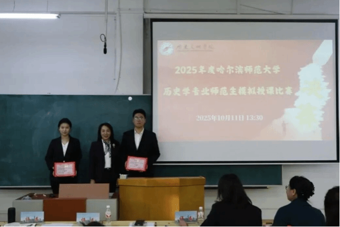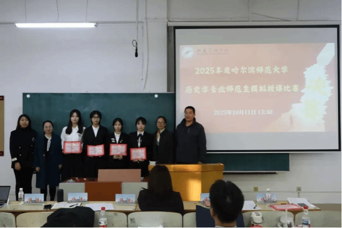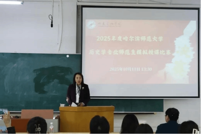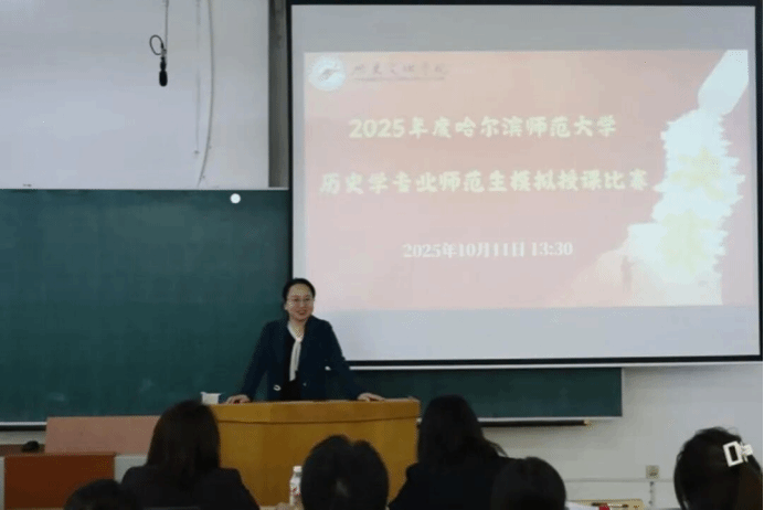 为深入贯彻教育强国理念,全面提升师范生授课能力,2025年10月11日下午,178足球 在人文楼433教室成功举办了2025年度历史学专业师范生模拟授课比赛决赛。本次活动特邀哈尔滨市高中历史教研员安丽宏老师、178足球 副院长刘丽丽、178足球 王耘老师、段永富老师,教师教育178足球 邵兰琴老师担任评委。