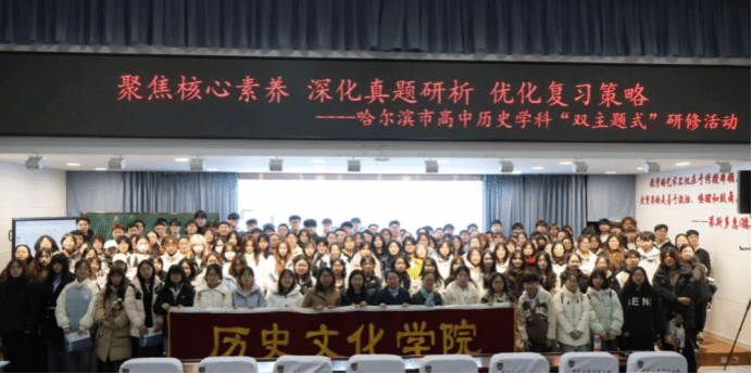 副院长刘丽丽带队,王耘、魏爽、程方、邵兰琴四位教师协同,带领2023级历史学专业全体同学赴哈尔滨市第一二二中学校,全程观摩以“聚焦核心素养 深化真题研析 优化复习策略”为主题的哈尔滨市高中历史学科“双主题式”研修活动。