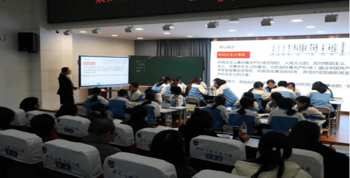 活动现场,哈尔滨市第一二二中学教师王彤创新运用AI技术,精准诊断学情,以《新民主主义革命的探索》为题呈现了一堂兼具趣味性与思辨性的示范课,并结合教学实践展开深度反思。