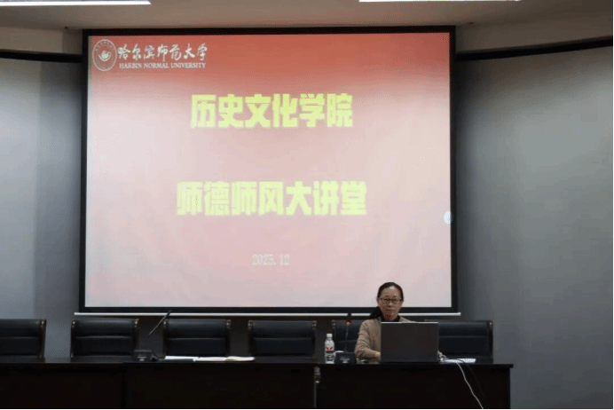 王耘老师以“大师精神”为主题,聚焦我校历史学科奠基人之一、著名学者游寿先生的教育生涯与精神风范。生动阐述了游寿先生近七十年从教路上“作育英才、追求进步、克己修身”的崇高品格。王耘老师指出,以游寿先生为代表的前辈大师,其高尚师德与人格风范是学校宝贵的精神遗产,为新时代教师树立了鲜活榜样。