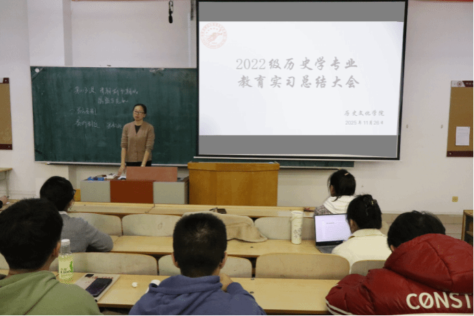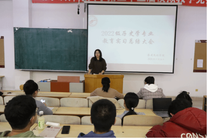 (王诗博/文)为深化教师教育人才培养,加强师范生实践能力、凝练教育实践成果,2025年11月26日下午,178足球 在人文楼412多媒体教室举办2022级历史学专业教育实习总结汇报会。汇报会由历史系主任南慧英主持,178足球 教学副院长刘丽丽,多位带队教师、校内指导教师及2022级历史学专业全体同学共同参加。