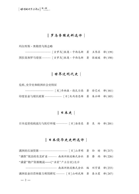 本辑为“译丛”创刊号,共收录23篇译作,由来自上海师范大学、首都师范大学、东北师范大学、吉林大学、上海大学、哈尔滨师范大学等高校世界史学科教师和博士研究生翻译完成,内容涉及世界古代中世纪史、世界近现代史、日本史、日本侵华史、古典史料和日本侵华史料翻译等学科专业方向。